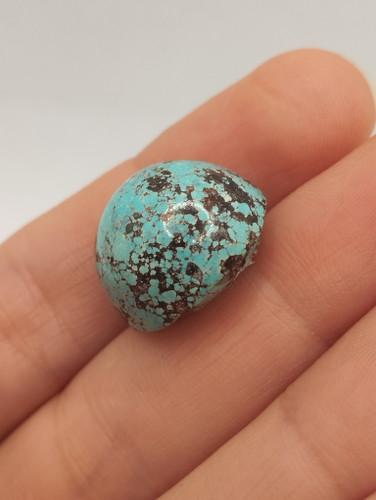 نگین فیروزه نیشابوری اصل ، تراش دامله، سایز 1.2 در 1.6 سانتی متر، کد F016