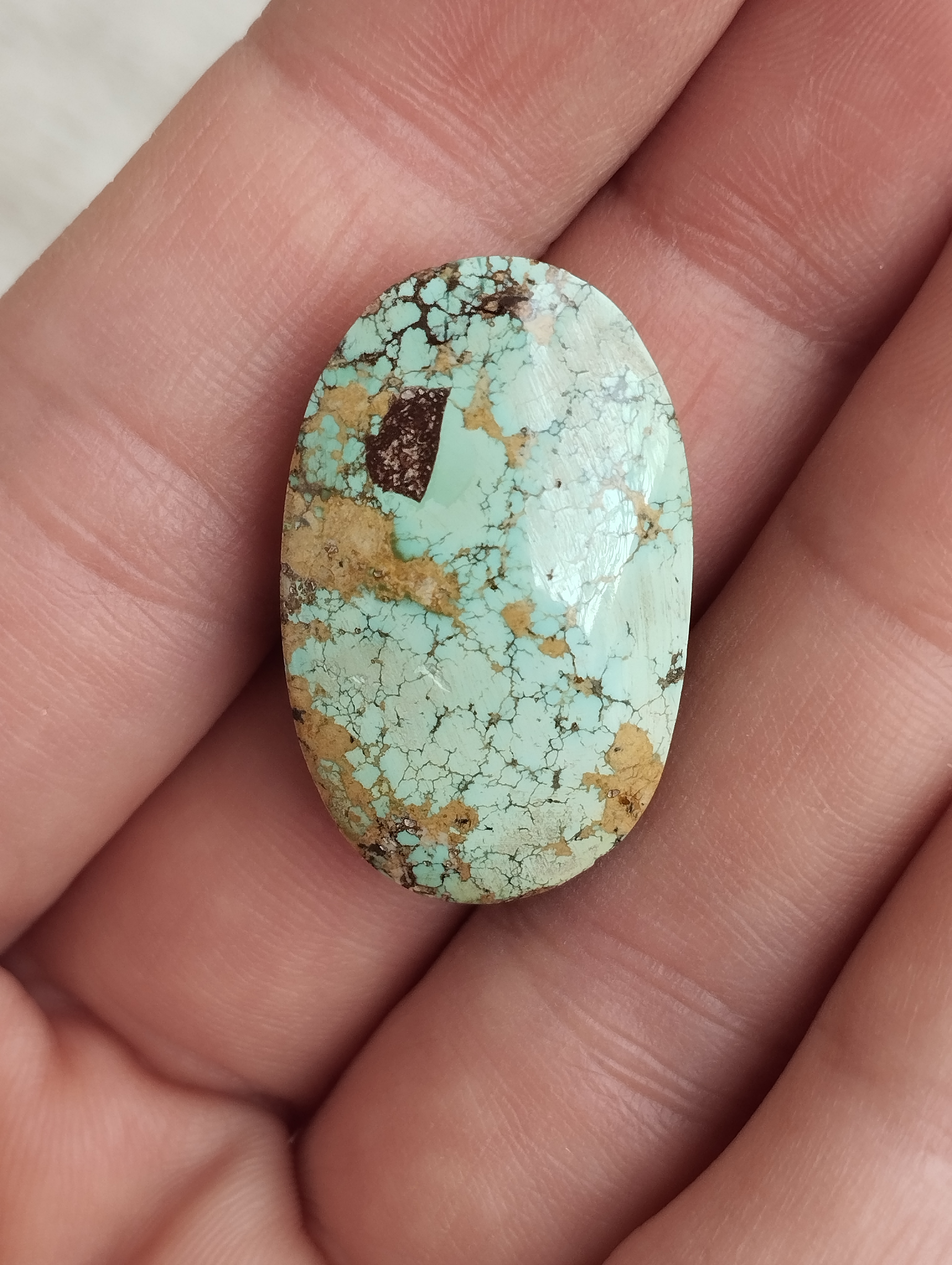 نگین فیروزه نیشابور سایز 14×18 با رگه های طلایی کدF017