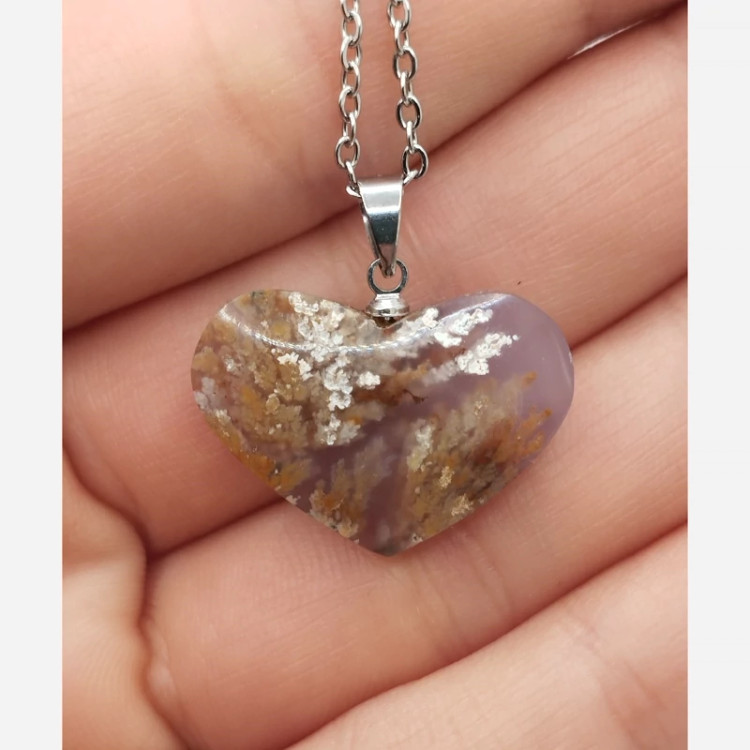 _گردن آویز سنگ عقیق شجر شکوفه اصل _تراش قلب و دارای طرح منحصر به فرد _به همراه زنجیر استیل ضد زنگ و ضد حساسیت _وزن:4گرم