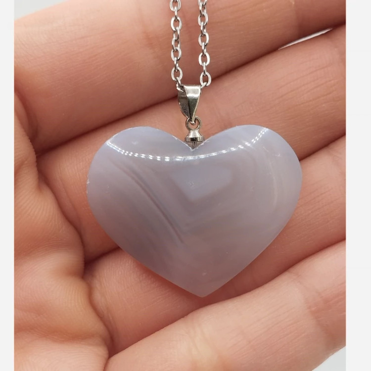 _ گردن آویز سنگ عقیق سلیمانی اصل _تراش قلب و دارای طرح منحصر به فرد _به همراه زنجیر استیل ضد زنگ و ضد حساسیت