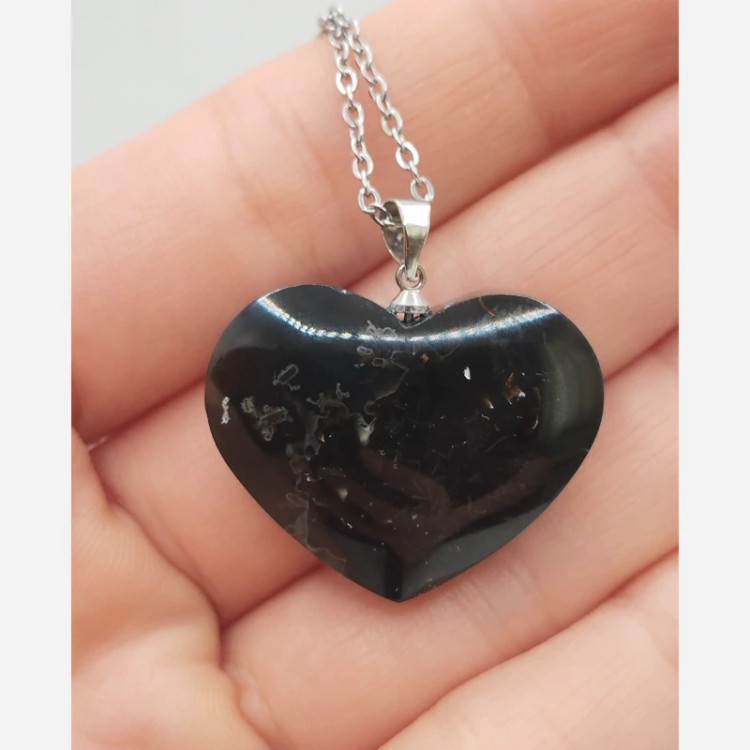 _گردن آویز سنگ عقیق سیاه اصل _تراش قلب و دارای طرح منحصر به فرد _به همراه زنجیر استیل ضد زنگ و ضد حساسیت _وزن:8.8 گرم