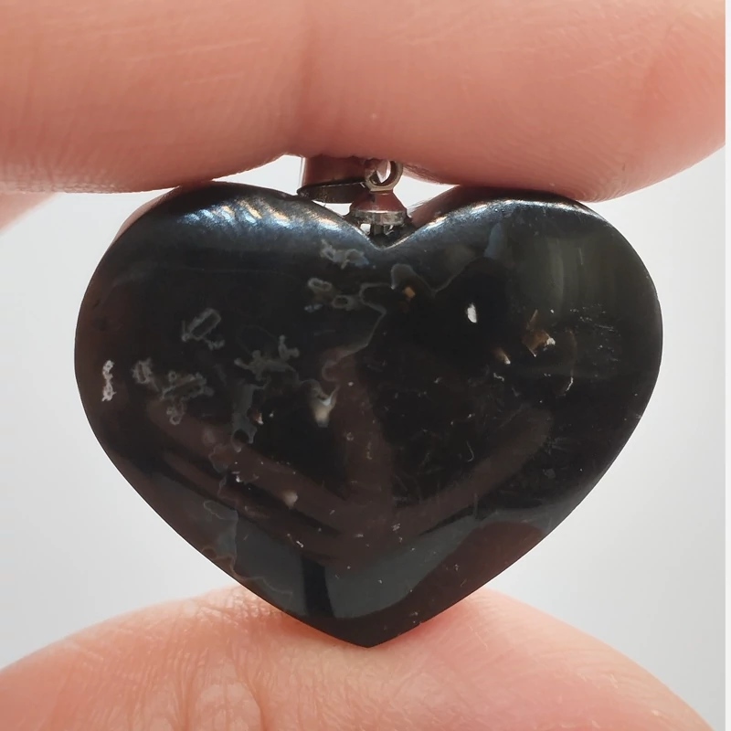 _گردن آویز سنگ عقیق سیاه اصل _تراش قلب و دارای طرح منحصر به فرد _به همراه زنجیر استیل ضد زنگ و ضد حساسیت _وزن:8.8 گرم