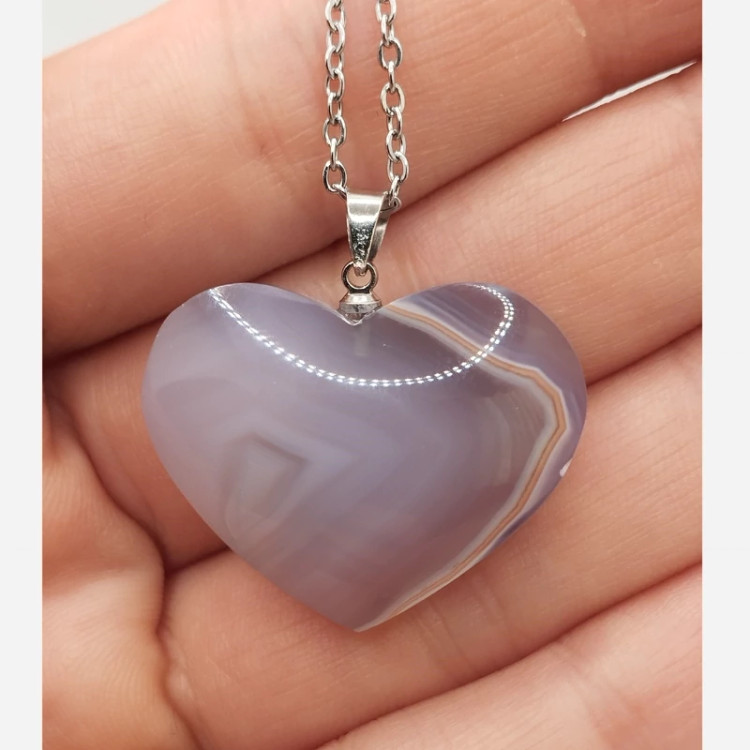گردن آویز سنگ عقیق سلیمانی اصل تراش قلب و دارای طرح منحصر به فرد به همراه زنجیر استیل ضد زنگ و ضد حساسیت وزن:8.9 گرم