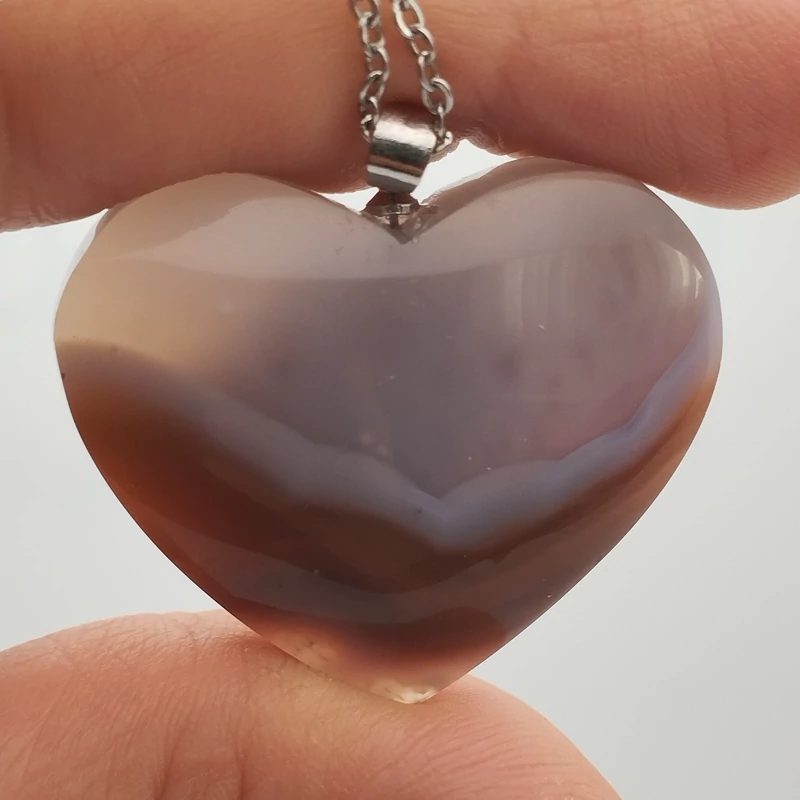 _گردن آویز سنگ عقیق سلیمانی اصل _تراش قلب و دارای طرح منحصر به فرد _به همراه زنجیر استیل ضد زنگ و ضد حساسیت