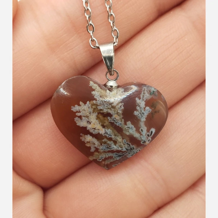 _گردن آویز سنگ عقیق شجر شکوفه اصل _تراش قلب و دارای طرح منحصر به فرد _به همراه زنجیر استیل ضد زنگ و ضد حساسیت _وزن:3.6گرم