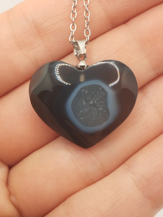 گردن آویز سنگ عقیق سلیمانی خراسان، به همراه زنجیر استیل ،کدGA030