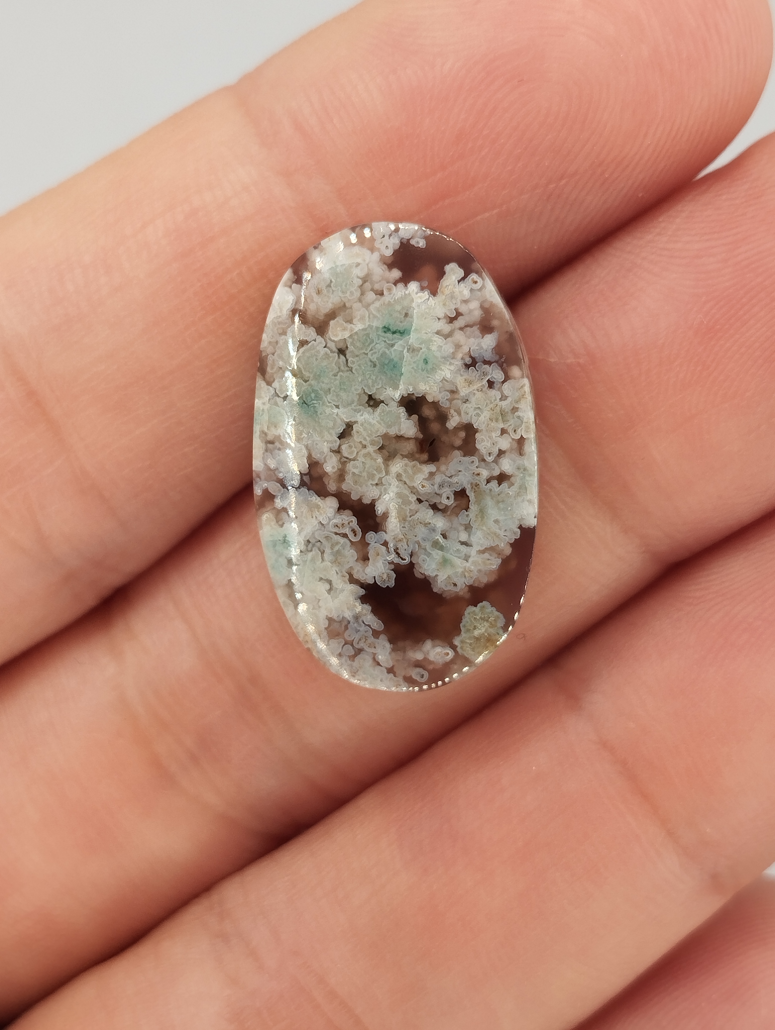 _نگین عقیق شجر شکوفه _اصل و معدنی با رنگ و طرح طبیعی _تراش باکیفیت، مناسب ساخت انواع زیور آلات _وزن: ۲.۶۷ گرم _سایز: ۱۳ در ۲۲ میلی متر