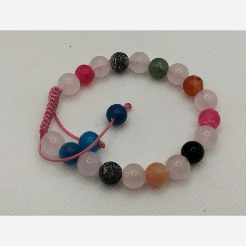 دستبند سنگ رز کوارتز و عقیق برزیلی