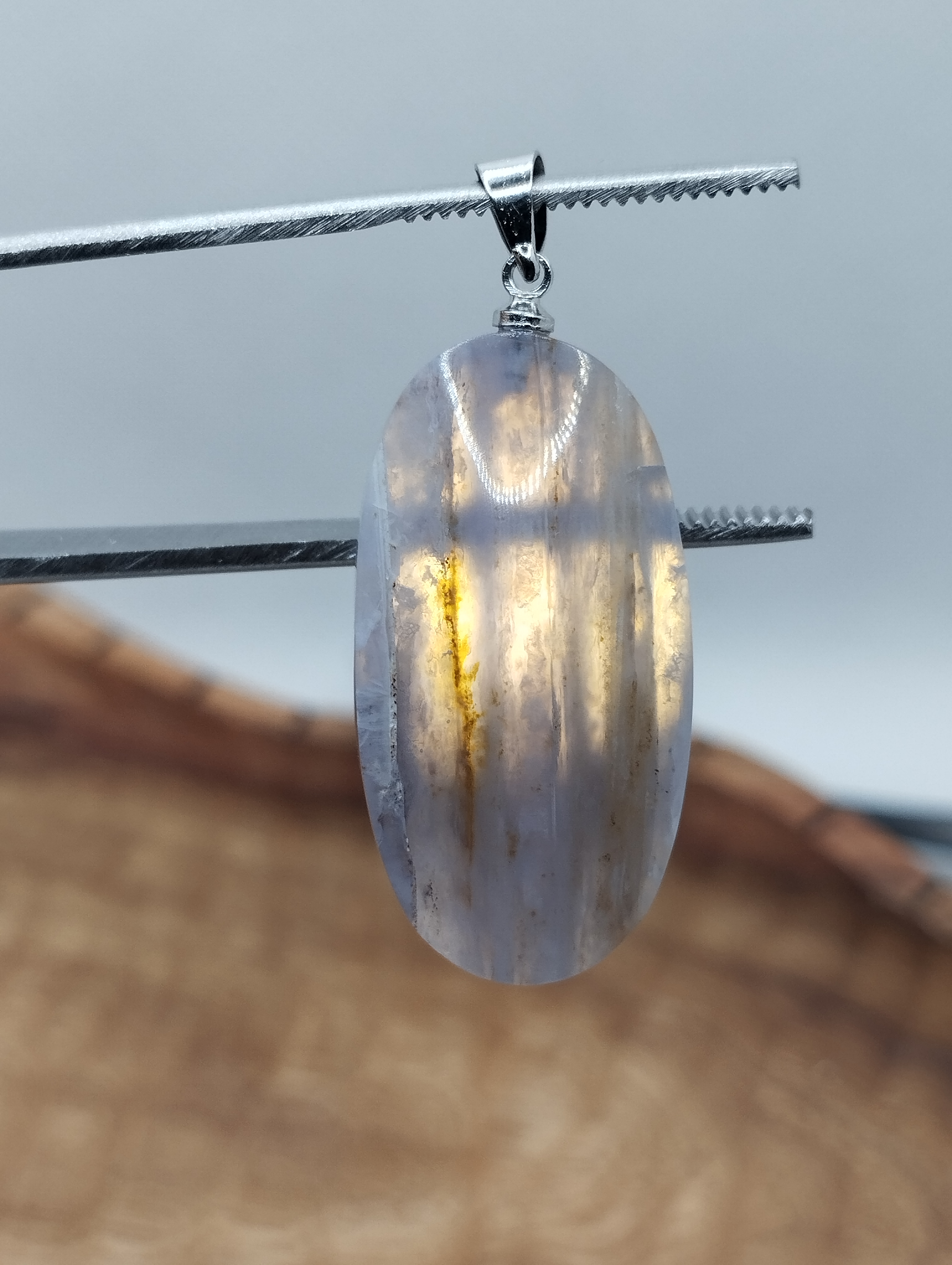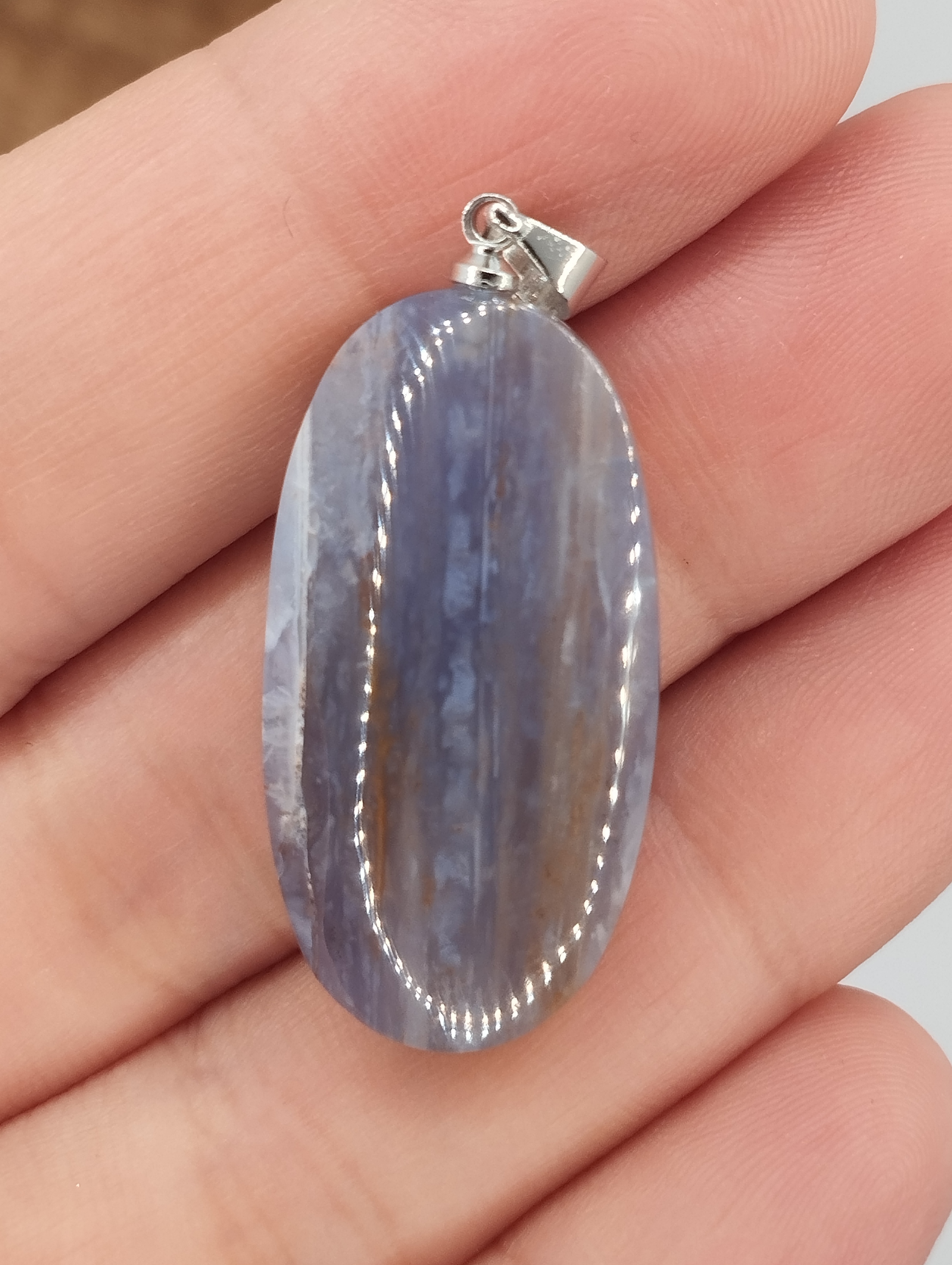 _گردن آویز سنگ عقیق آبی فردوس _اصل و معدنی با طرح و رنگ طبیعی _به همراه زنجیر استیل رنگ ثابت _وزن: ۵.۱۶ گرم _سایز:۱۶ در ۳۰ میلی متر
