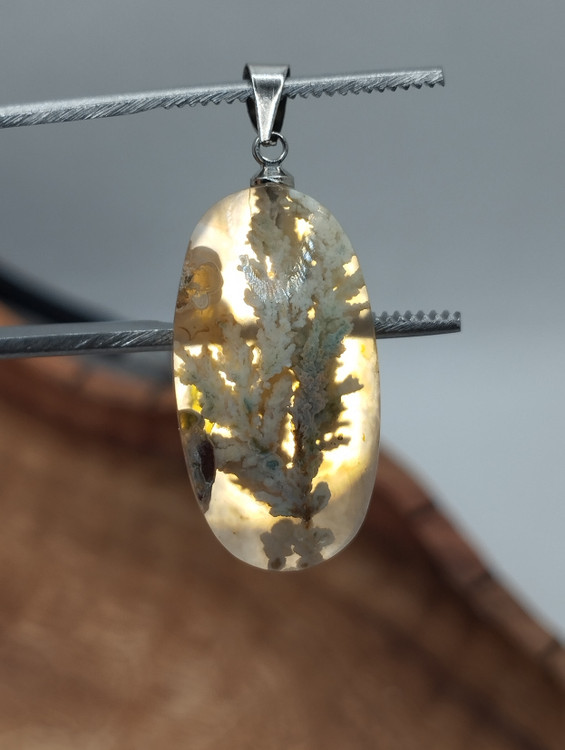 گردن آویز عقیق شجر به همراه زنجیر استیل ،کدGA0۶۷